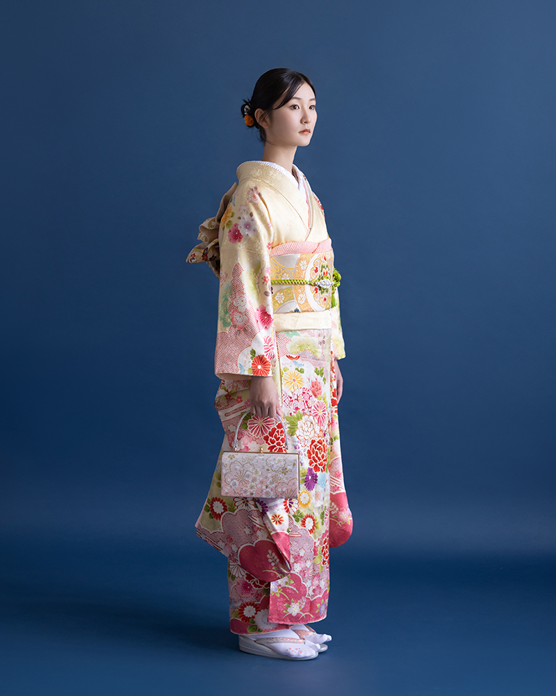 振袖選びでは、気に入ったものをいくつか選んだ後、実際に着付けていただき、鏡を見ながら自分に一番似合う一着を選ぶことができました。どの振袖もとても素敵で悩んでいたところ、店員の方が私の好みに合わせて、他にも似合いそうな振袖を提案してくださり、とても嬉しかったです。また、帯や帯締め、バッグなどを自分好みにカスタマイズできたことで、納得のいくコーディネートを完成させることができました。