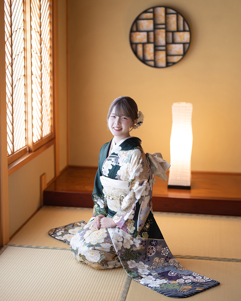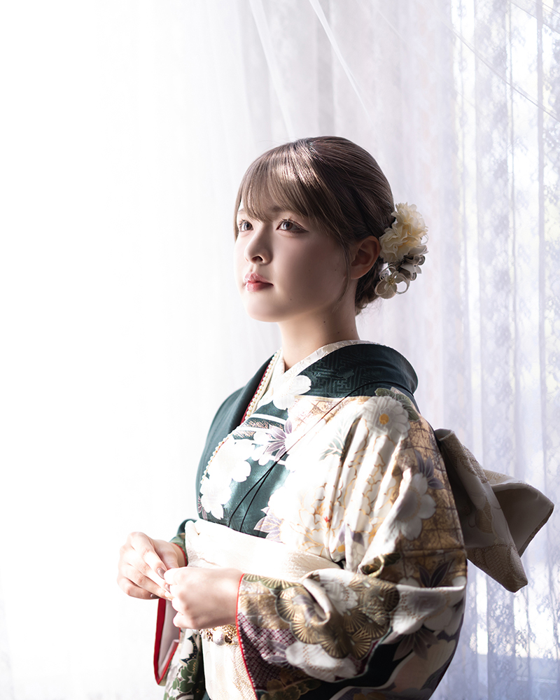 振袖は中学生の頃からずっと着たいと考えていた深緑のものを選びました。その他の小物などもお店の方が丁寧に教えてくださったり、一緒になって選んでくださり、式典だけではなく振袖を選ぶ段階でもとても楽しくて夢のような時間でした。そして、一生に一度の二十歳の集いに最高で綺麗な振袖姿で行くことができました。また、購入した振袖でしたが、式典や前撮りが終わった後も丁寧に着物のメンテナンスをしてくださり、安心して保管することができました。